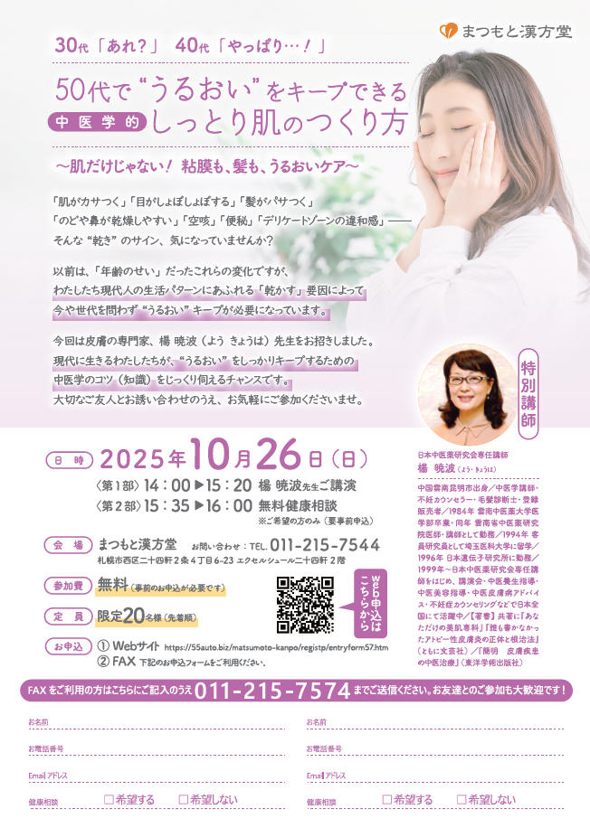 まつもと漢方堂無料店頭健康講座「50代で“うるおい”をキープできる中医学的しっとり肌のつくり方」