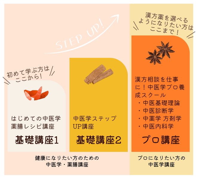 まつもと漢方堂の中医学講座では、ご自身のレベルや目的に合わせて講座を選択することができます。
