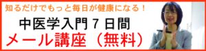 ただいまお申込受付中です。 受講希望の方はこちらの「お問合せフォーム」からご連絡ください。 まず「中医学とはどんなものか」をお知りになりたい方は、以下の7日間メール講座にご登録ください。